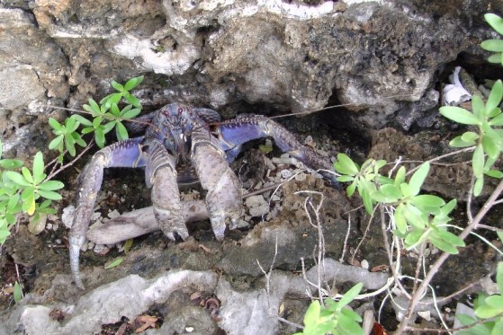 椰子蟹是十足目陸寄居蟹科的節肢動物,體重最高可達7公斤,但成長緩慢,約10年才能長到1公斤重,為現存最大型的陸生節肢動物,並且善於爬樹,能爬到樹頂覓食。剛出生時會找貝殼寄居,等到頭胸甲長到1至1.5公分後改用堅硬的外殼保護腹部,牠能用螯足剝開椰殼食用椰子果肉,並且白天常躲藏於海邊陰涼的樹林、石頭及珊瑚礁之下,晚間才出沒覓食。