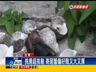 花東海岸的寄居蟹,長大想換殼,卻貝殼多半卻早被遊客撿光光,導致被迫住在破紙盒、塑膠管中,讓人好心疼,下次去海邊看到美麗的貝殼別急著撿,還是先留給寄居蟹吧!(民視新聞李育翰台東報導