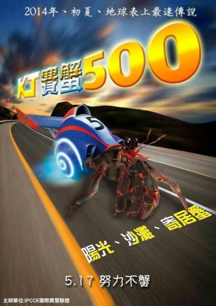 海報寫著「KT賽蟹500。2014年、初夏、地球表上最速傳說。陽光、沙灘、寄居蟹,5月17日努力不蟹。」上頭還有大大的寄居蟹圖片,看似虐蟹競賽,讓努力為寄居蟹找家的民眾看了十分生氣。