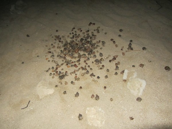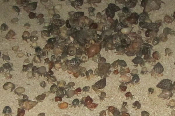 恆春半島沙灘上的大量寄居蟹常吸引遊客爭睹。(記者蔡宗憲翻攝)