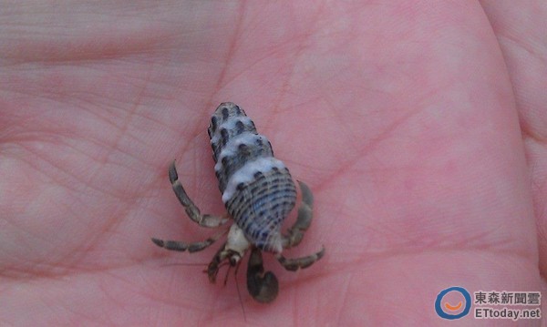 編按:這隻寄居蟹被拍完照片之後,原地放回。