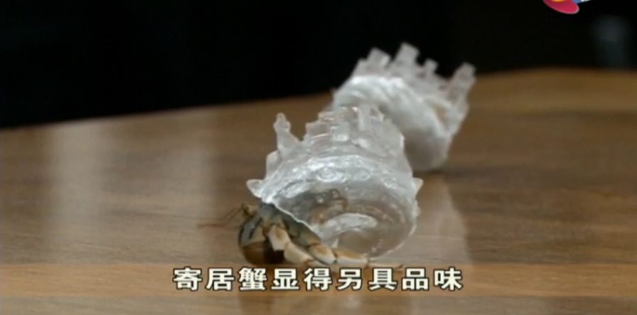 抛弃旧外壳,住进靓丽新居,寄居蟹显得另具品味。日本艺术家利用3D打印机为它们设计出代表著名地标和建筑的新外壳。