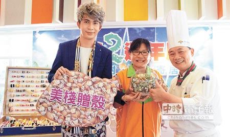 美棧飯店找來阿基師(右)、寄居蟹媽媽黃淑凰(中)與新星張凱仲(左)讚聲,希望民眾將食用後的螺殼回歸自然給寄居蟹使用。(周綾昀攝)觀賞相片