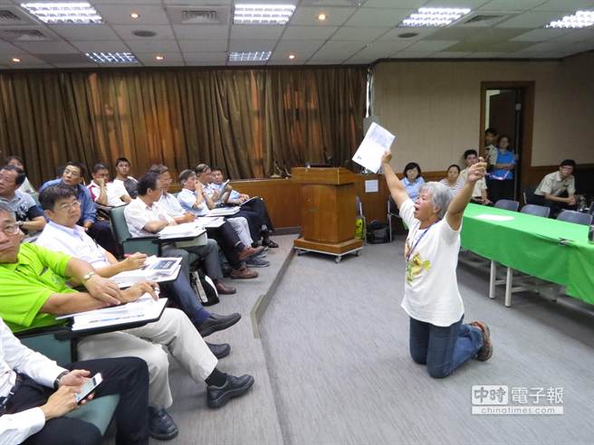 車城後灣京棧大飯店開發案2日舉行環差報告,護蟹人士激動跪求環評委員,留下恆春半島最後一塊淨土。(郭韋綺攝)