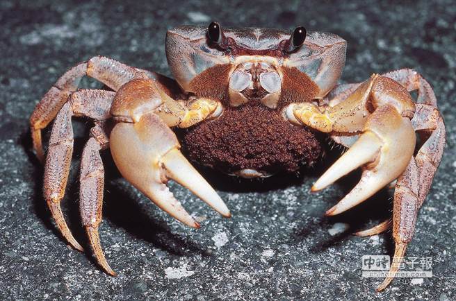 恆春半島及車城後灣陸蟹密集度相當高,夏日常見抱卵陸蟹下海釋卵。(郭韋綺攝)