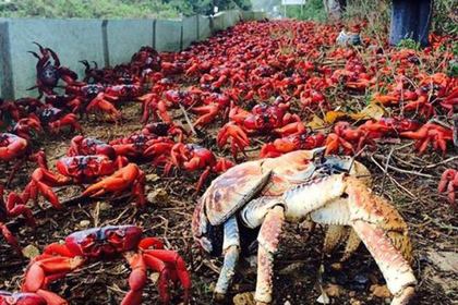 在北半球時序入秋,是吃螃蟹的季節,南半球同時即將進入夏天,一年一季的紅蟹繁殖季也揭開序幕。每年十一月下旬,澳洲西部外海的聖誕節島(Christmas Island)著名的紅蟹大軍就會在島上橫行,科學家估計,島上共有約4千5百萬隻紅蟹,會在為期二到三周的時間席捲全島,景象極為壯觀,每年都吸引世界各地的觀光客前來朝聖。