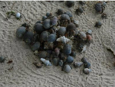 A free-for-all takes place whenever three or more hermit crabs congregate, with all crabs intent on displacing someone else to get a larger shell.