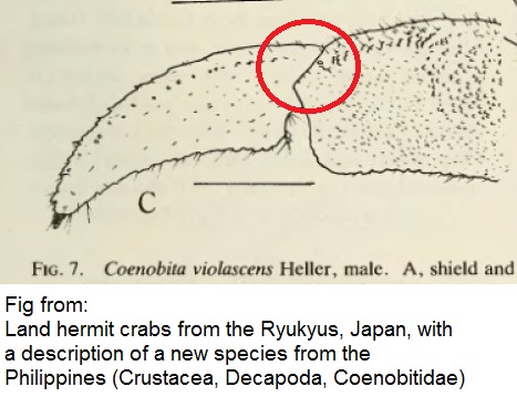 1. Coenobita pseudorugosus, although this species was introduced by scientific article, still no detial information (only specimen drawing), no correct color picture of specimen. Now only know that they can be found in Indonesia.