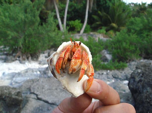 日本的橙紅陸寄居蟹(Coenobita perlatus)都在些軍事地區, 無人島