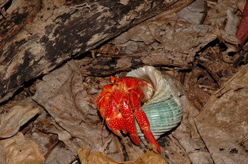 日本發現的橙紅陸寄居蟹(Coenobita perlatus), 都在些軍事地區, 無人島, 要發現牠們真的不容易.