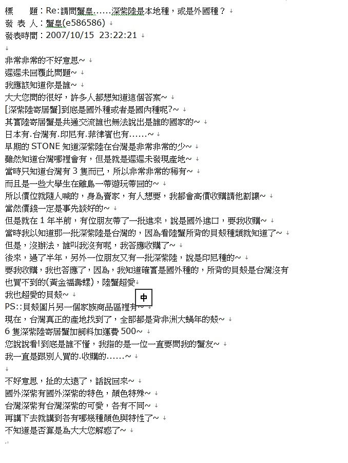P.S. 説我是狗也算了,為何其他所有飼養者不跟你錯的飼養方法, 不追隨你的,跟正確飼養方法的台灣蟹友都“被成為”香港狗的手下?