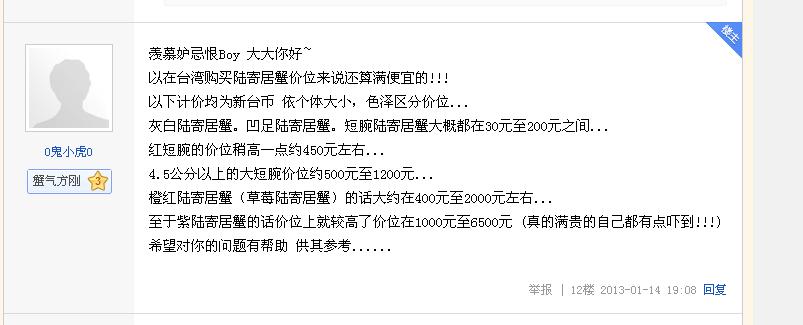 除了橙紅陸寄居蟹, 凡是外國種以前在台灣的價格也是瘋狂的.