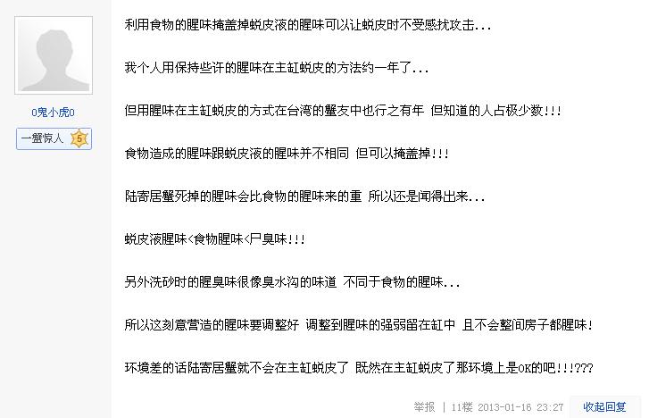 他曾經在百度寄居蟹吧, 發表過的<腥味脫皮法>.