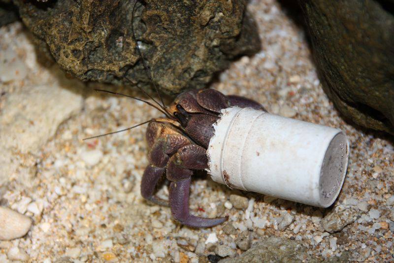 在墾丁海灘盡情享受遊憩活動時,請不要撿拾寄居蟹或空貝殼,貝殼是寄居蟹的住家,是護身保命的資源,每帶走一個螺殼,寄居蟹就少一個家,我們很常看到陸生寄居蟹找不到螺殼的窘境,委屈地背著太小或破爛的殼,或者背著瓶蓋,或著將就背著空瓶子,生命的安全感隨著貝殼一起消失,隨時備受威脅。