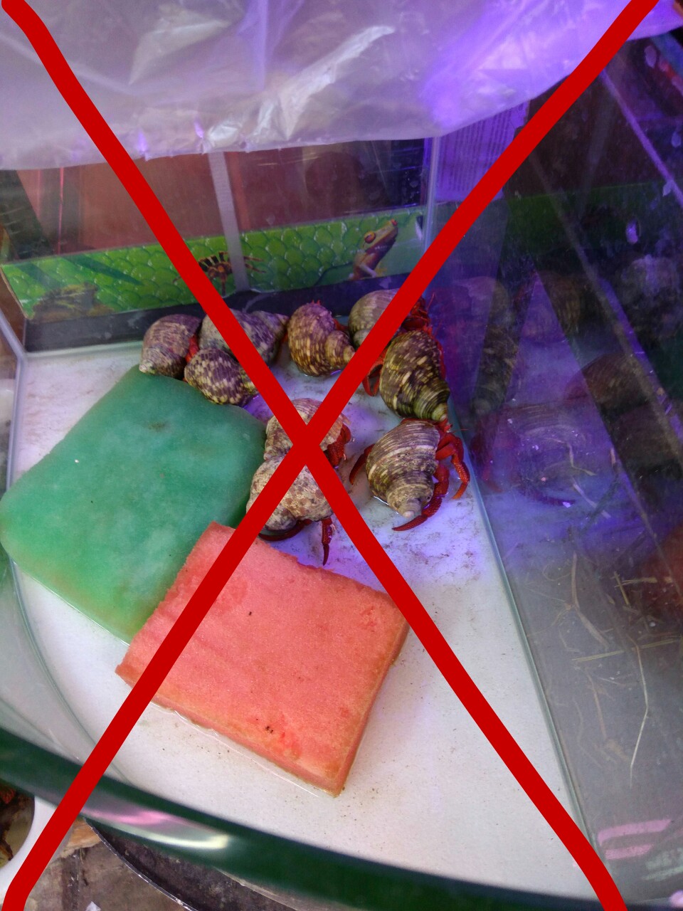 陸寄居蟹新手, 請不要購買橙紅陸寄居蟹(俗稱草莓寄居蟹, 士多啤梨寄居蟹), 尤其是大型個體(約網球大小), 因為這品種比較難養得活.