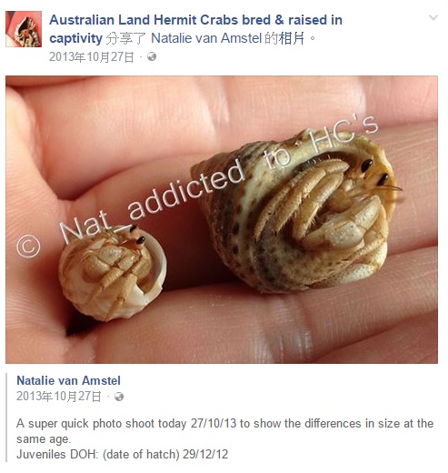 外國自家繁殖出來的coenobita variabilis, 年齡相同, 但相隔大半年, 體型大小可以有這麼大的差異, 即體型大小可能只是一個參考!?