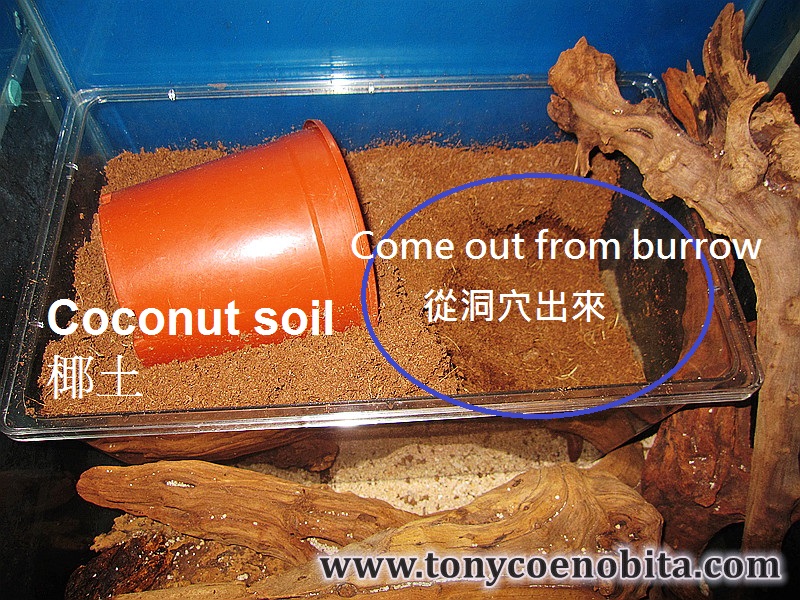 6月尾深紫陸寄居蟹(Coenobita violascens)出關了, 可以看到從椰土爬出來的洞穴痕跡.