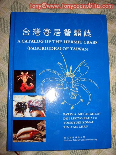 1. 此書說出現在在台灣記錄的陸寄居蟹, 有Coenobita rugosus(灰白陸), Coenobita brevimanus(短腕陸), Coeonbota violascens(深紫陸)這三種. 不知為何不見了Coenobia cavipes(凹足陸)這種.