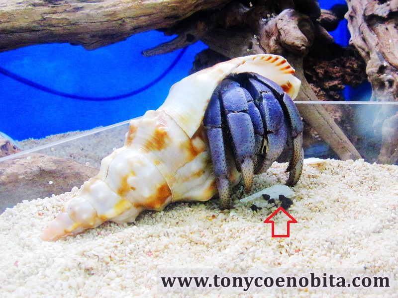很多時吃完蟹殼或欖仁葉, 都會在原地拉排泄物.