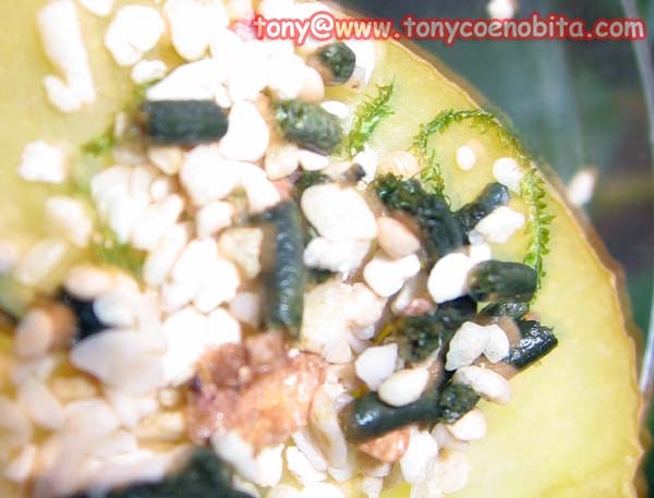 另一邊, 不知是中灰白或細小深紫陸在吃完香蕉+鈣粉後, 排出來的排泄物有一部分是帶灰灰黃黃的顏色. 想起來, 這種顏色之前應該也看過, 不過卻沒有留意當時餵了甚麼食物給牠們.