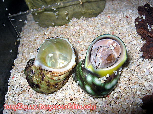 p.s. 剛購入的個體, 基於牠在野外所背的螺殼可能過少或過大, 所以回來的個體往往會很快更換為牠們準備好的新空螺殼.