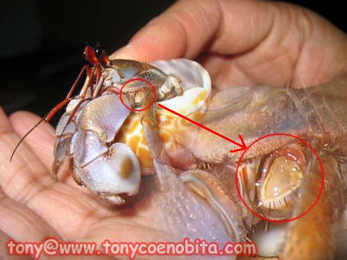 這天終於躲藏在沙裏了, 經過8日後再返出來. 這時小深紫陸斷腳那部分也長出了薄膜(下圖).