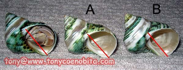 我自己是憑記憶和感覺去淮測, 即記著本身個體所背著的螺殼大小, 在選購時選擇幾個(通常2個)比原本螺殼較的一點的.