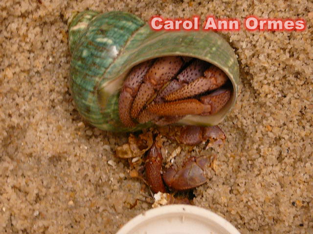 他將會待在隔離缸約一至兩個月, 等待甲殼變硬和體色恢復.