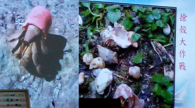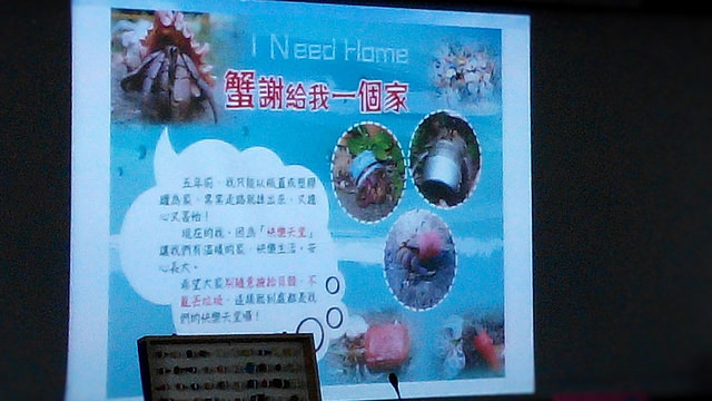 你看過無殼寄居蟹,或背著塑膠瓶蓋,甚至是沖天炮殼的寄居蟹嗎?寄居蟹們究竟被迫住了那些「違章建築」?墾丁青年活動中心的寄居蟹媽媽黃淑凰,在農委會特有生物研究中心的路殺社年會上分享成立寄居蟹換殼中心「快樂天堂」的過程,也期盼藉由推動中的「寄居蟹安心成家推手方案」,幫助寄居蟹尋回美麗、安全又堅固的家園。