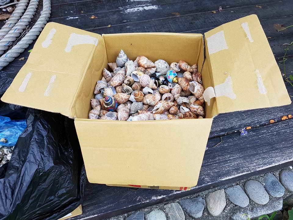 為寄居蟹找個家活動,今年持續進行中,但不是每一種貝殼都適合寄居蟹,工作人員必須將寄來的貝殼分類。圖/取自東管處臉書