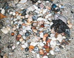 車城鄉後灣社區巡守隊,最近發現有人在附近海岸大量捕捉寄居蟹,當地居民估計已被捉走上萬隻,雖然有請國家公園警察來協助,但仍沒逮到盜捕者。這些被捕捉的寄居蟹,大多被帶到中北部夜市或水族館販售,居民擔心,因盜捕數量太多,會影響整體生態。