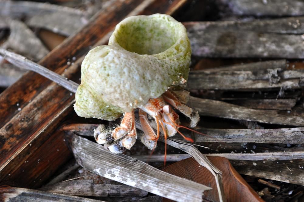 台灣有論文提及東沙島的灰白陸寄居蟹(Coenobita rugosus)的體型差異的原因在於東沙島充沛的海草碎屑, 其實我覺得野外的橙紅陸寄居蟹(Coenobita perlatus)也是吃了某種食物才維持到鮮艷的體色, 可是到現在都沒有學者去研究.