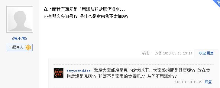 他曾經在百度寄居蟹吧, 發表過的<玫瑰鹽取代海水>.