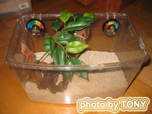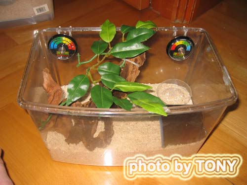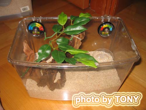 經過36日藏在沙裏進行脫殼後(在此之前約有一個月時間不斷進出沙子), 終於脫殼完成了. 從沙返回來後, 變得相當活躍, 還不怕人. 因為之前有個多月時間沒有進食, 所以給牠吃蛋糕時, 便大啖大啖的吃. 跟著便把放在手上爬了一會.